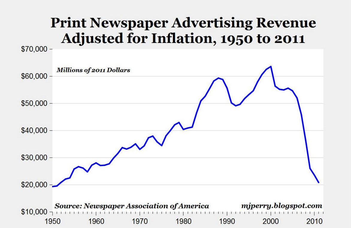 data on the newspaper industry that showed a business sector in radical decline,